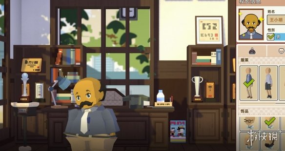 游戏人物的风格略显幽默,尤其是游戏界面开始创建校长的时候,你可以根据自己的想法设计出你想要的校长的样子,可以设置身高、体重、发型等等。